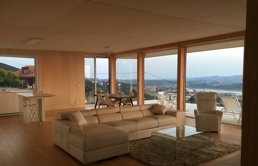 La singularidad del proyecto es que consigue una baja demanda energética y está certificado por Passivhaus. Los cerramientos superaron todos los ensayos realizados, obteniendo un 0,47 ren/h en el test blower door, siendo de 0,6 ren/h lo exigido en Passivhaus. Un total de 8000 m2 en un entorno idílico como son las magníficas vistas a la playa de Valdoviño.